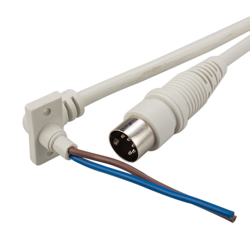 Conector del dinar del varón 5PIN 180° a 2 PIN Cable-Tail Power el cable eléctrico blanco del cable del motor de la primavera del equipamiento médico